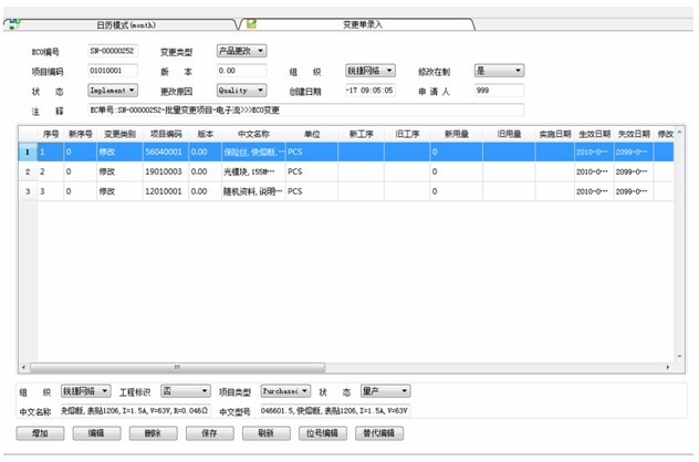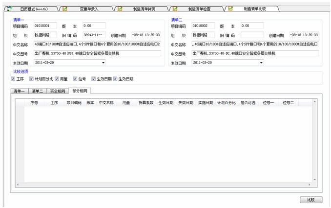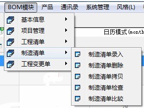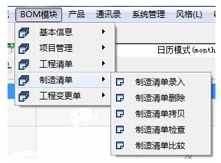 制造BOM录入、制造BOM导入、制造BOM拷贝、制造BOM检查、制造BOM比较。