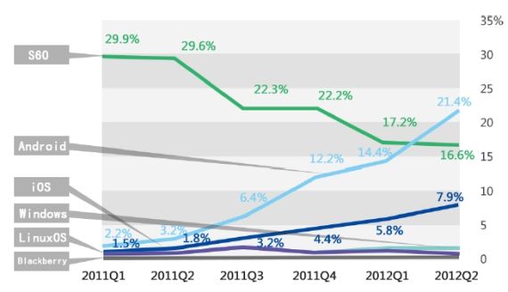图一:2011Q1-2012Q2智能平台PV占比变化