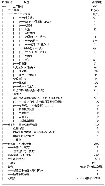 3. 如果存在为FG属性的盒式产品有配置工勘外部电缆或光模块情况,则建立销售类BOM,对应销售项目为PTO属性。销售BOM结构为:光模块,电缆做成POC属性,再加上FG属性的盒式机。