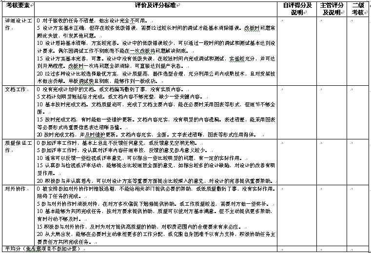 您现在的位置:> 工具与模版> 研发团队绩效考核表> 硬件单板工程师