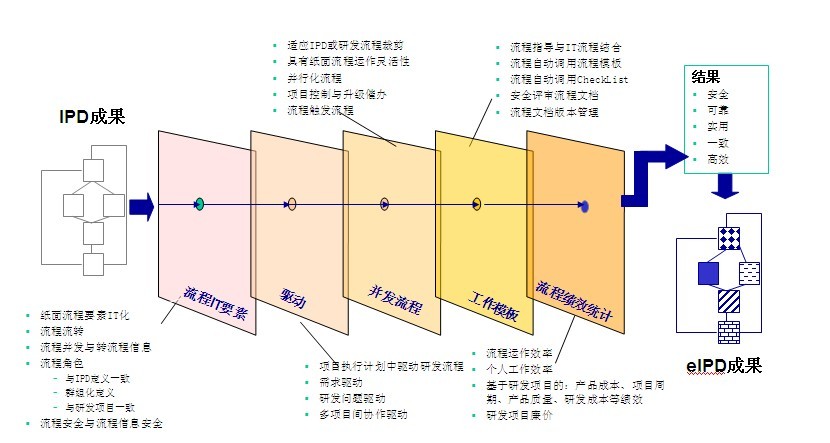 eIPD继承了IPD所有理论基础,eIPD解决了纸面化的IPD咨询文档不能落地到日常业务运作问题。让企业IPD流程100%得到执行,IPD流程100%控制监控、保证IPD流程100%不会变形与退化。